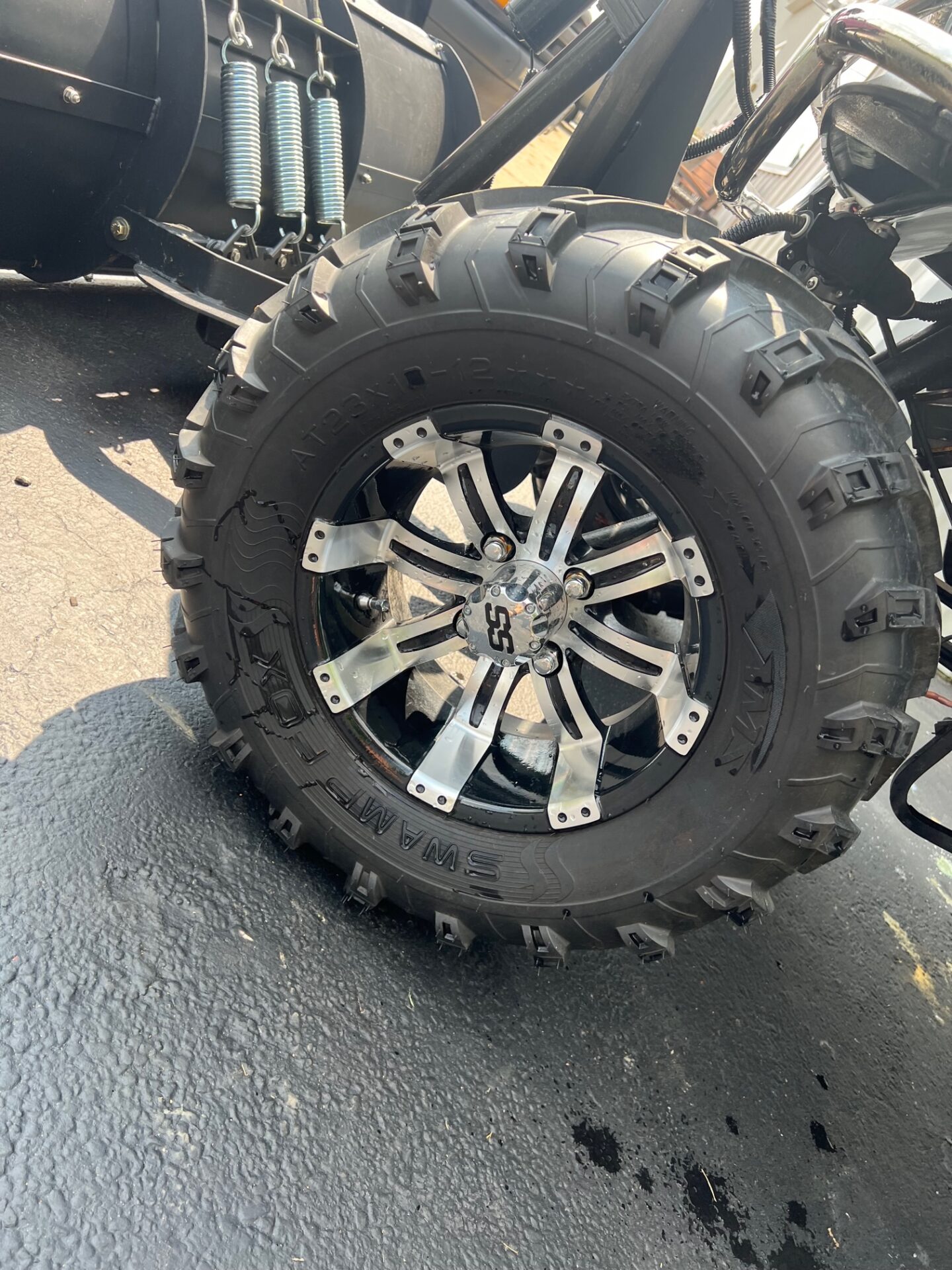 - CUSTOM 12″ RIMS W/ 23″ ALL TERRAIN TIRES