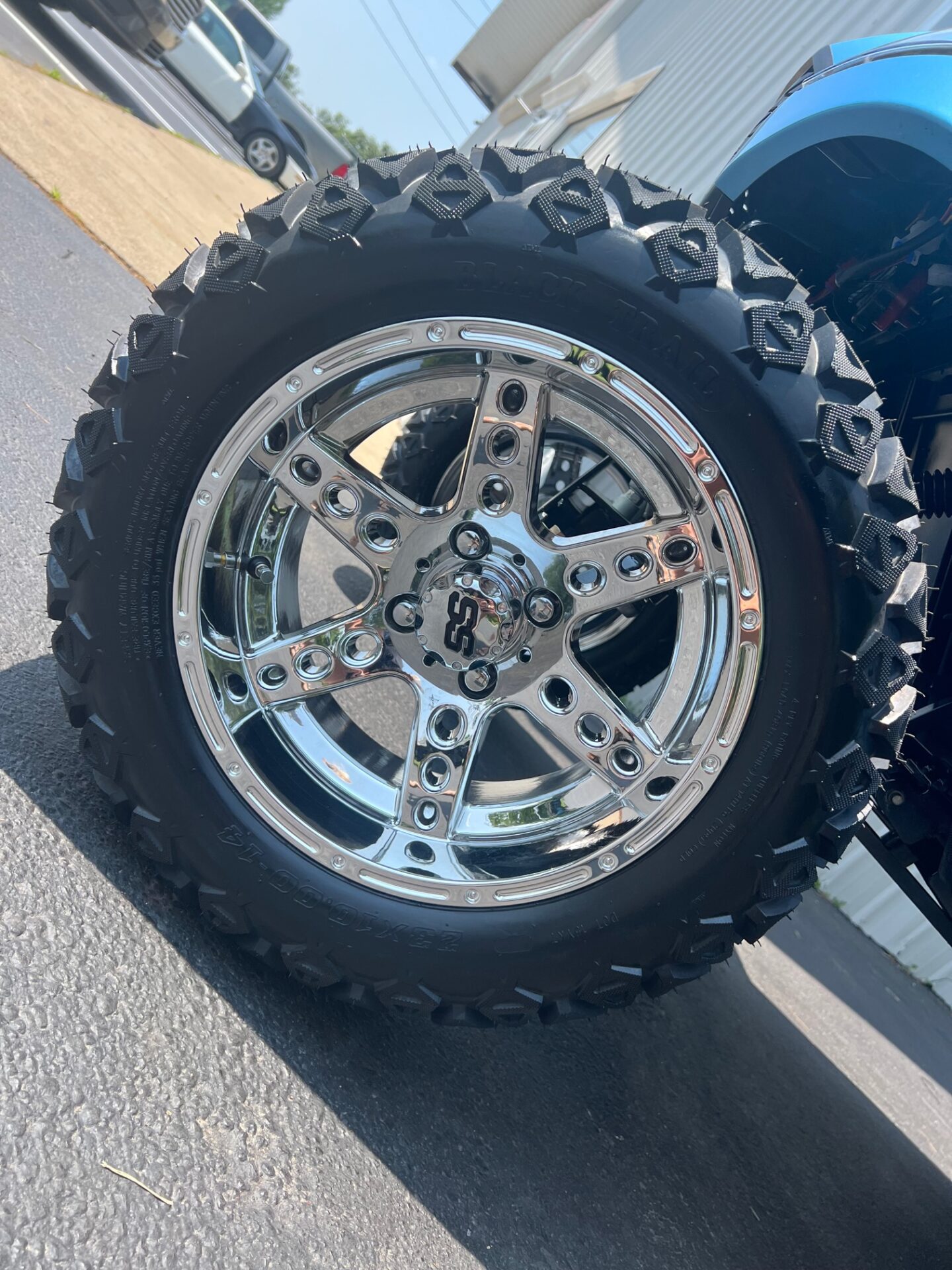 • 14″ CHROME RIMS W/ 23″ ALL TERRAIN TIRES