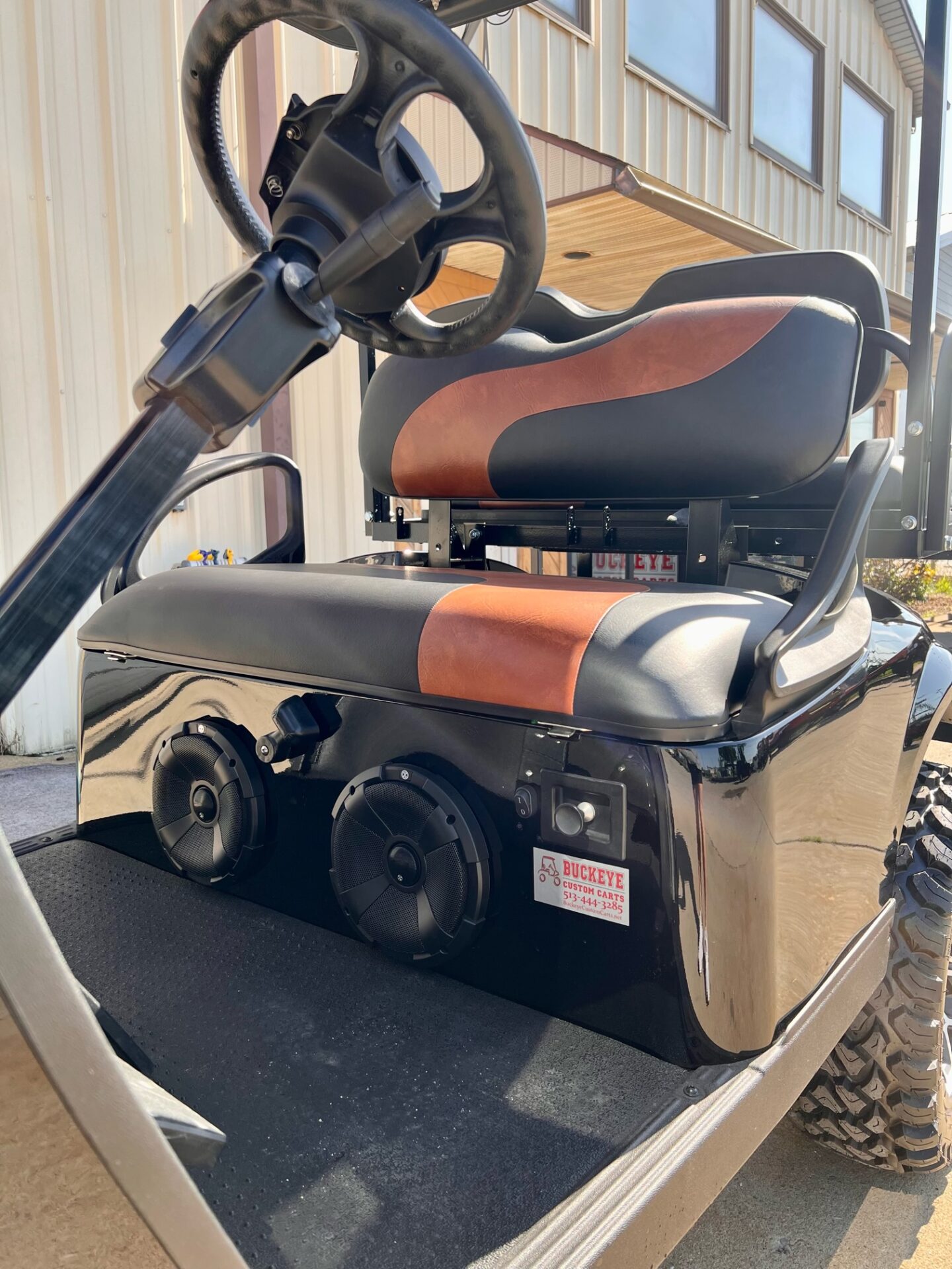 - BLACK SEATS W/ TAN DIVER DOWN INSIRTS W/ MATCHING REAR FLIP SEAT
