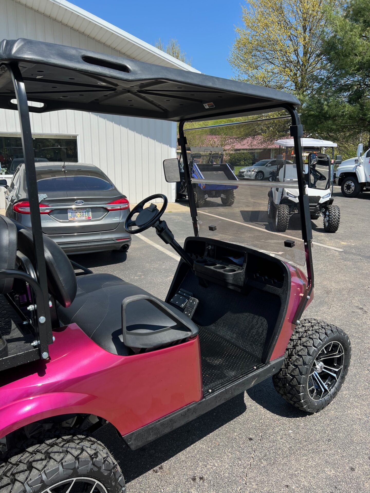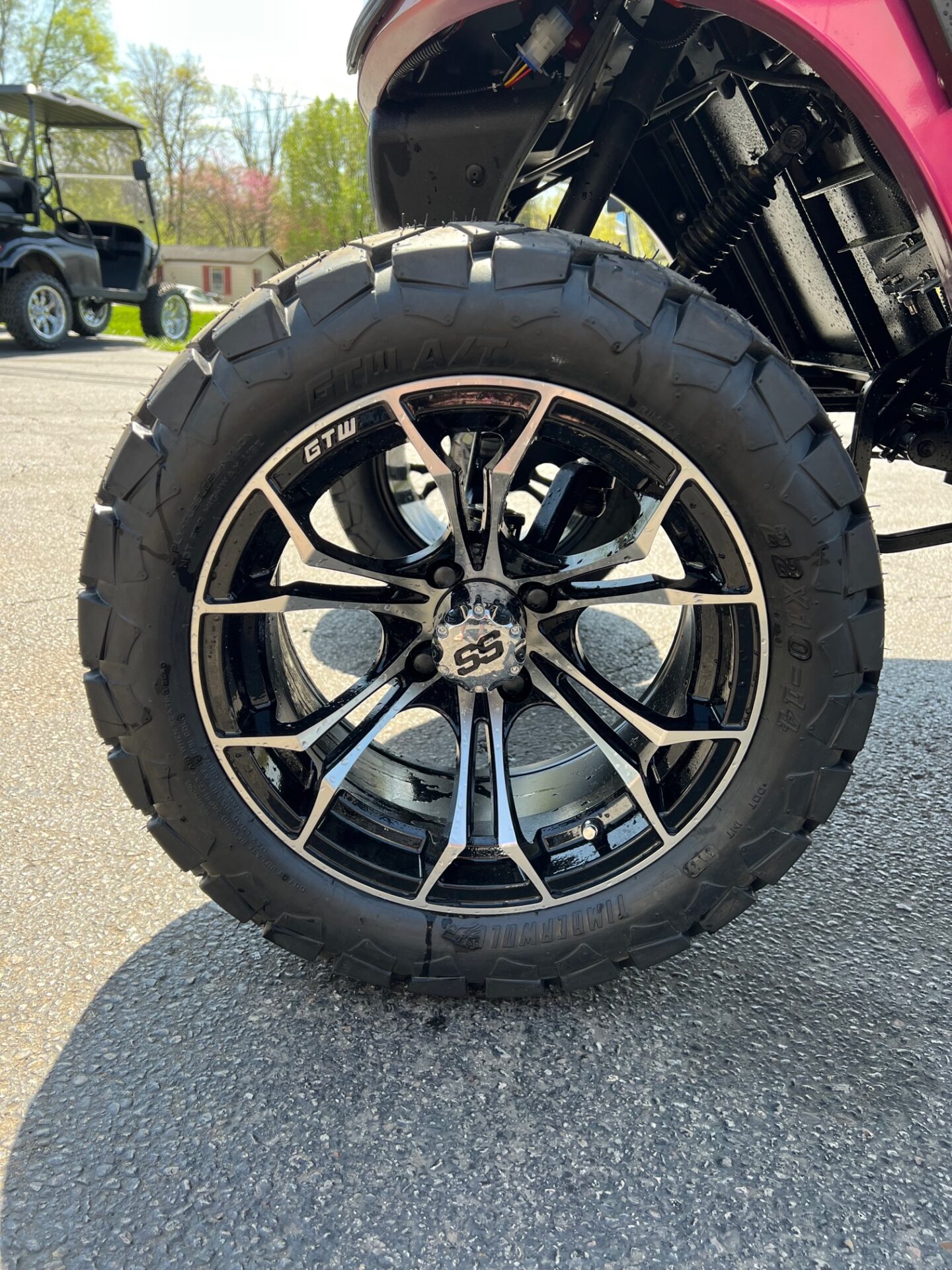 - 14″ BRUSHED ALUMINUM & BLACK RIMS W/ 22″ ALL TERRAIN TIRES