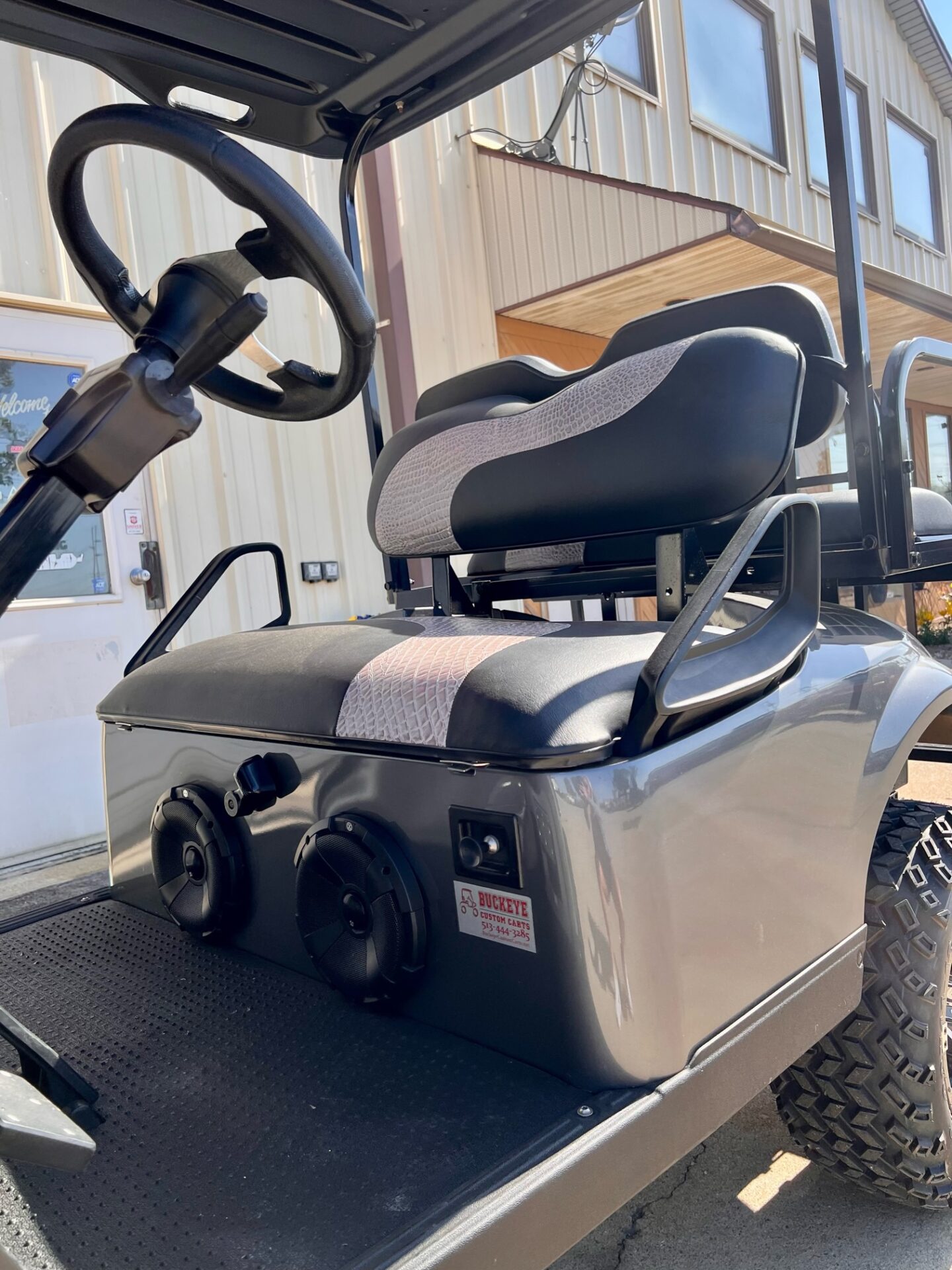 - BLACK SEATS WITH GREY CROC SKIN INSIRTS W/ MATCHING REAR FLIPSEAT