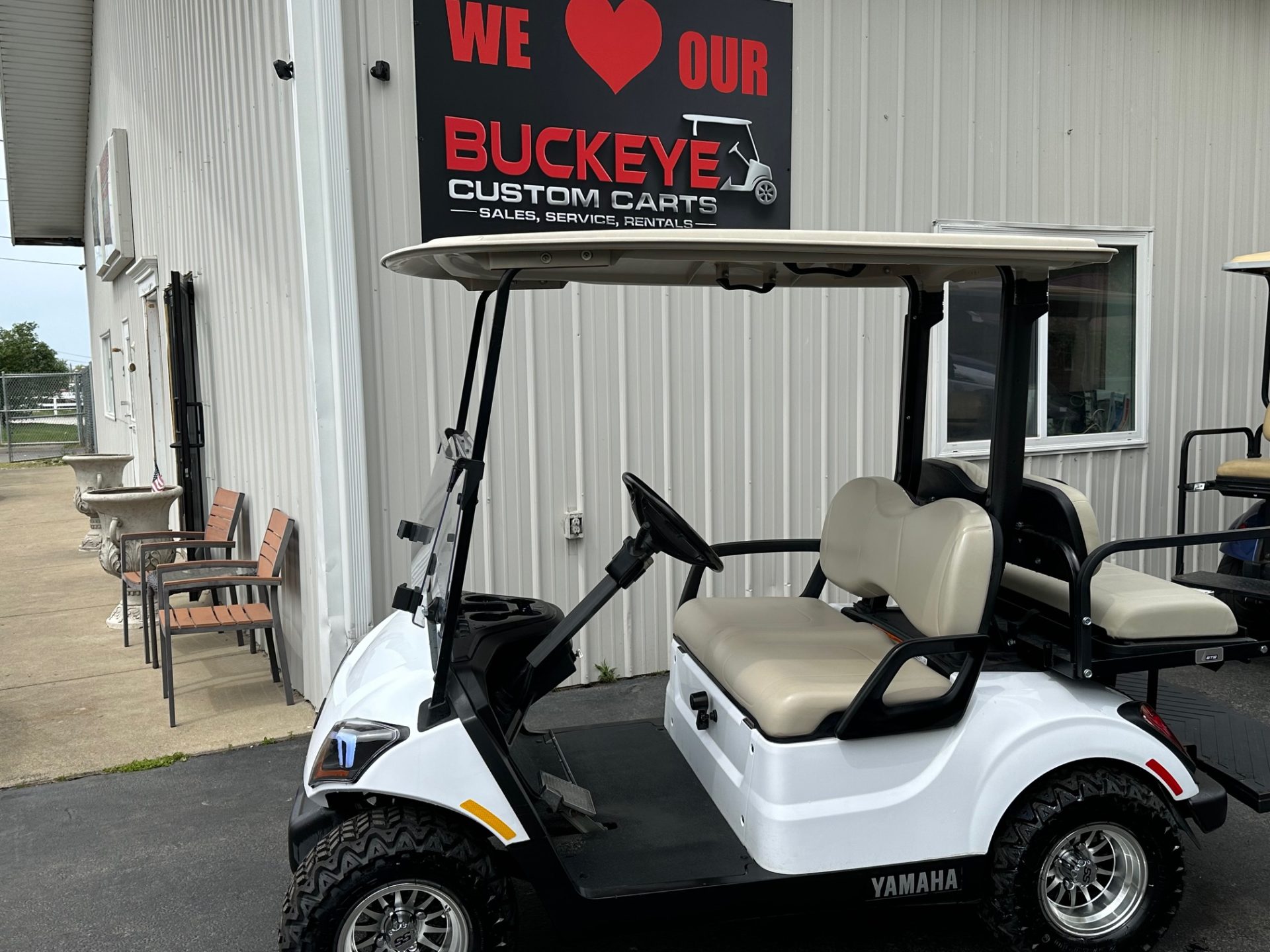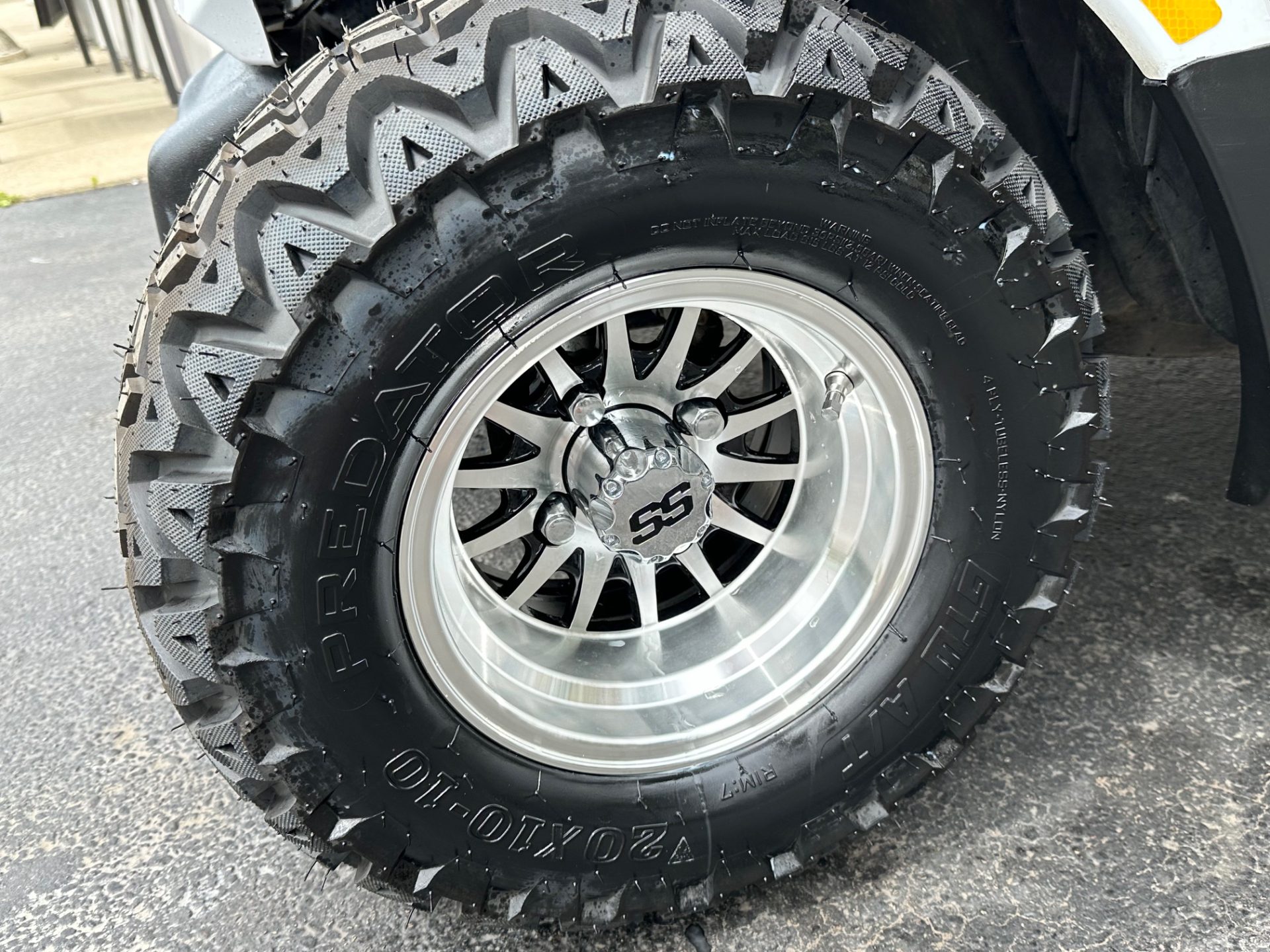 - custom 10″ rims w/ 20″ all terrain tires