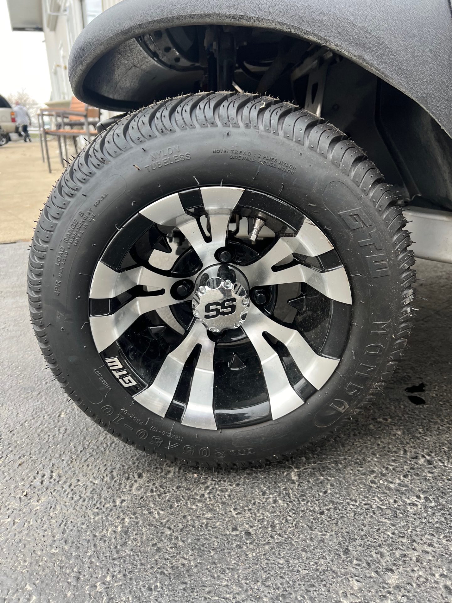 • 10″ black & silver rims w/ street tires