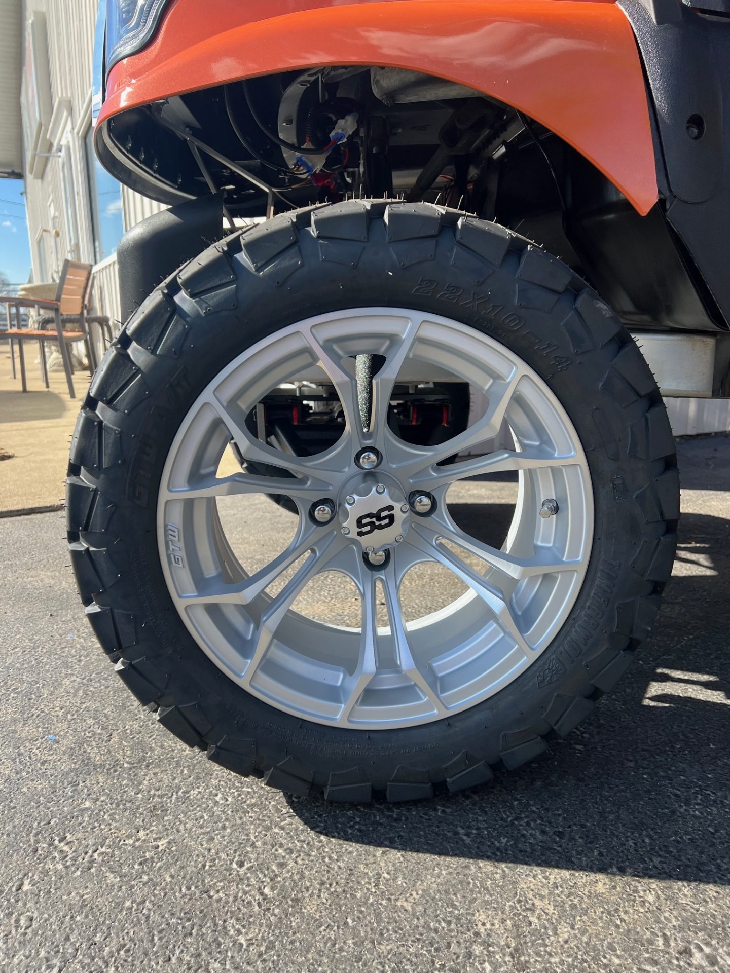 - 14″ matte rims w/ 23″ all terrain tires