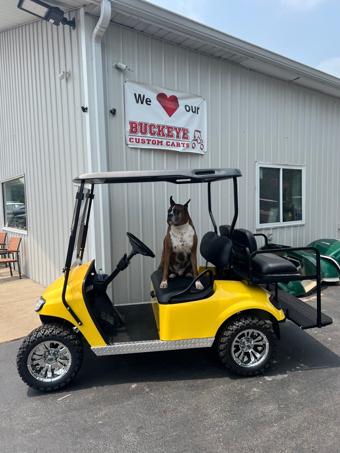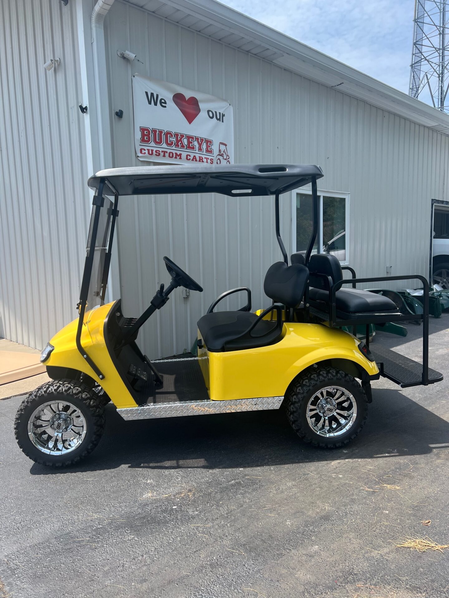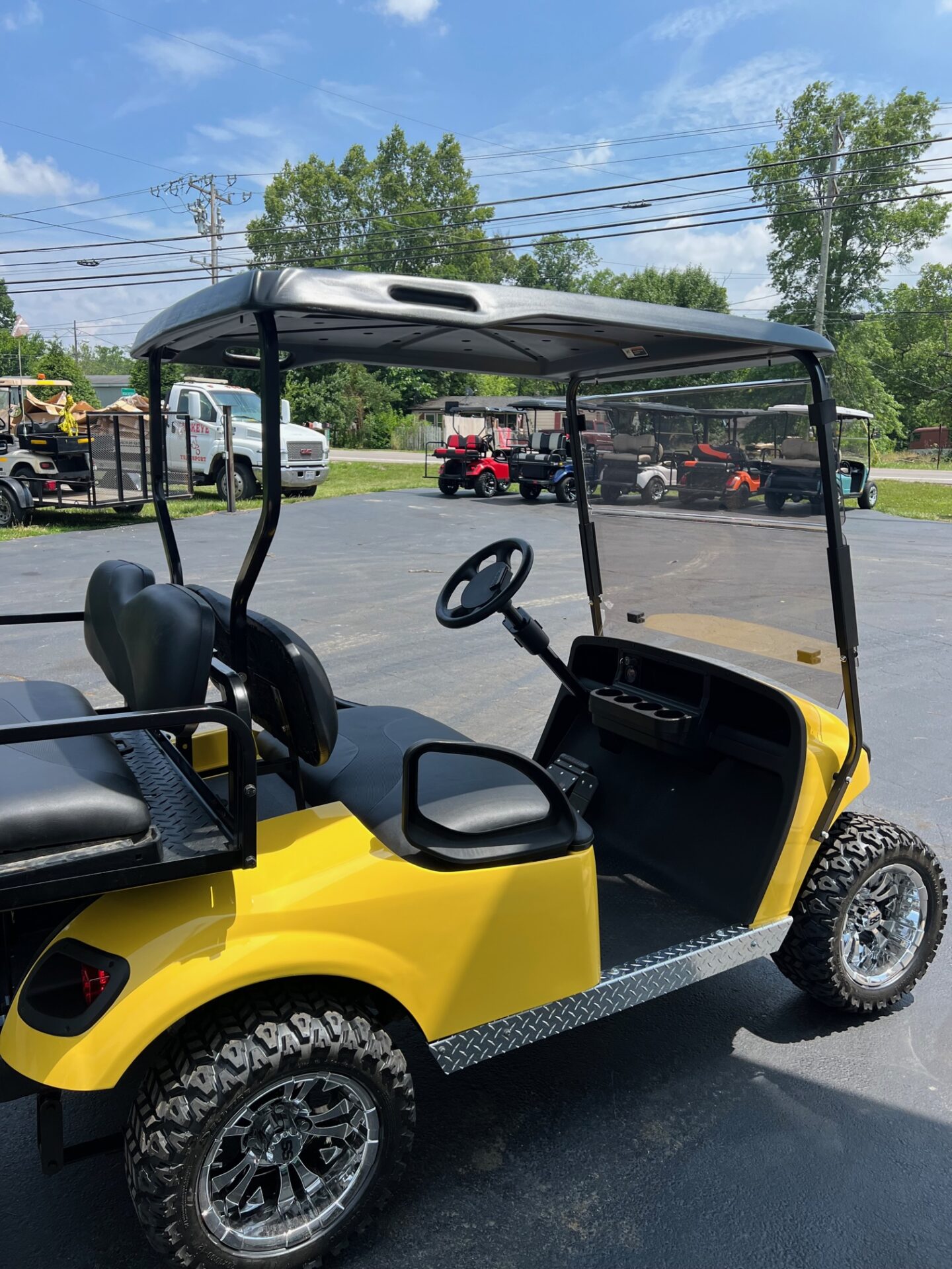 - custom 12″ chrome rims w/ 20″ all terrain tires