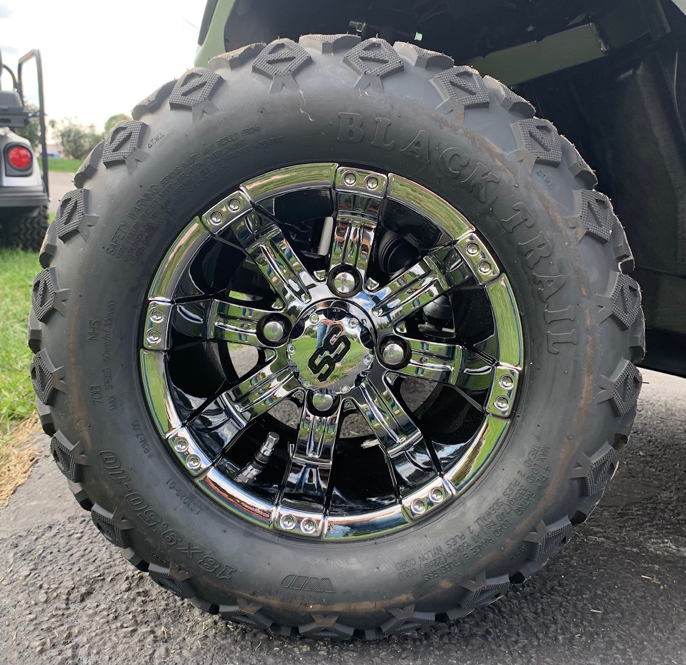 • 10″BLACK MIRRORED RIMS w/ALL-TERRAIN TIRES