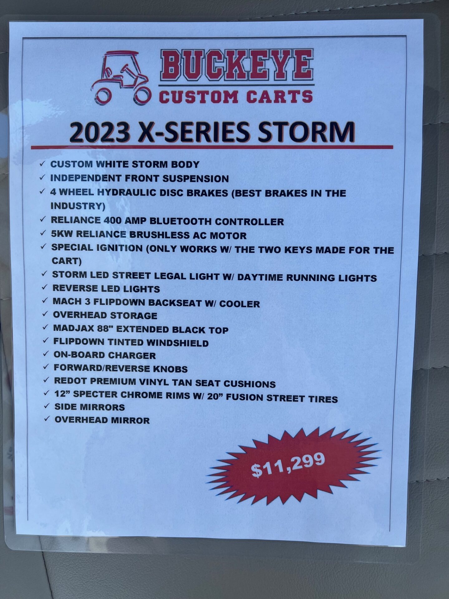 • SPECIAL IGNITION (ONLY WORKS W/ TWO KEYS MADE FOR THE CART)