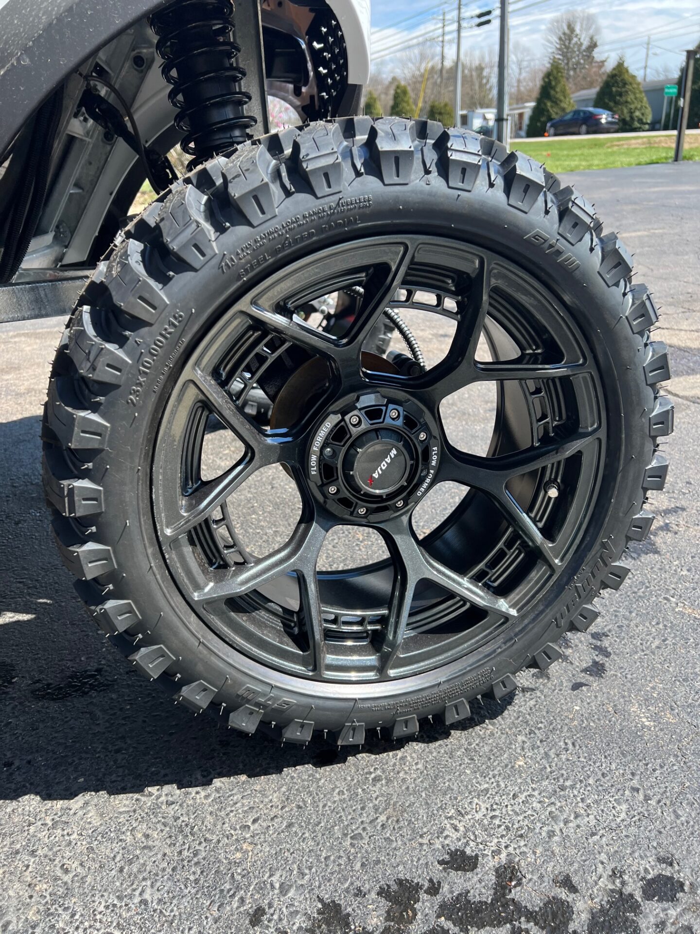 - 15″ FLOW FORM EVOLUTION GUNMETAL RIMS W/ 23″ GTW NOMAD ALL TERRAIN TIRES