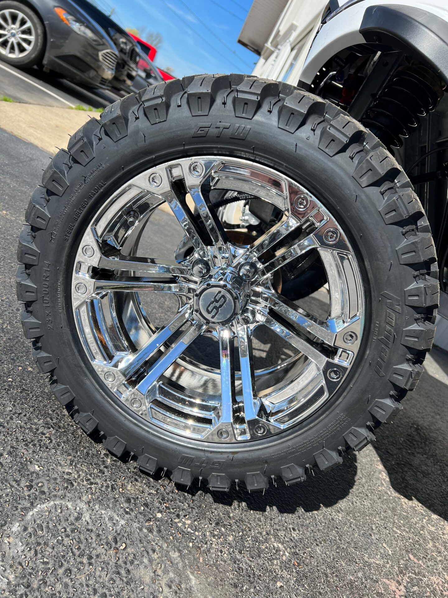 - 14″ CHROME SPECTER RIMS W/ 23″ NOMAD ALL TERRAIN TIRES