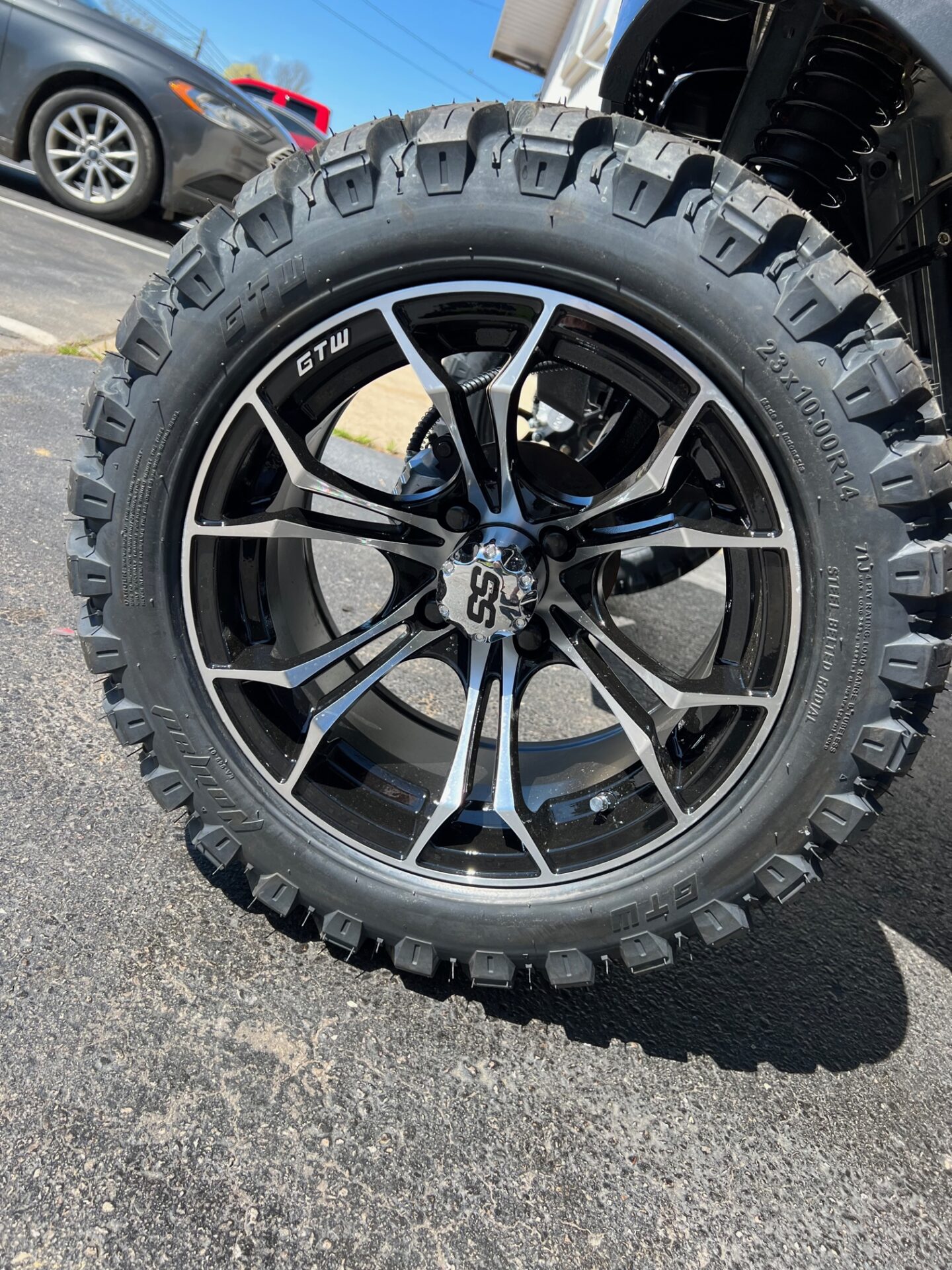 - 14″ SPYDER BLACK W/ MACHINED ACCENTS W/ 23″ NOMAD ALL TERRAIN TIRES