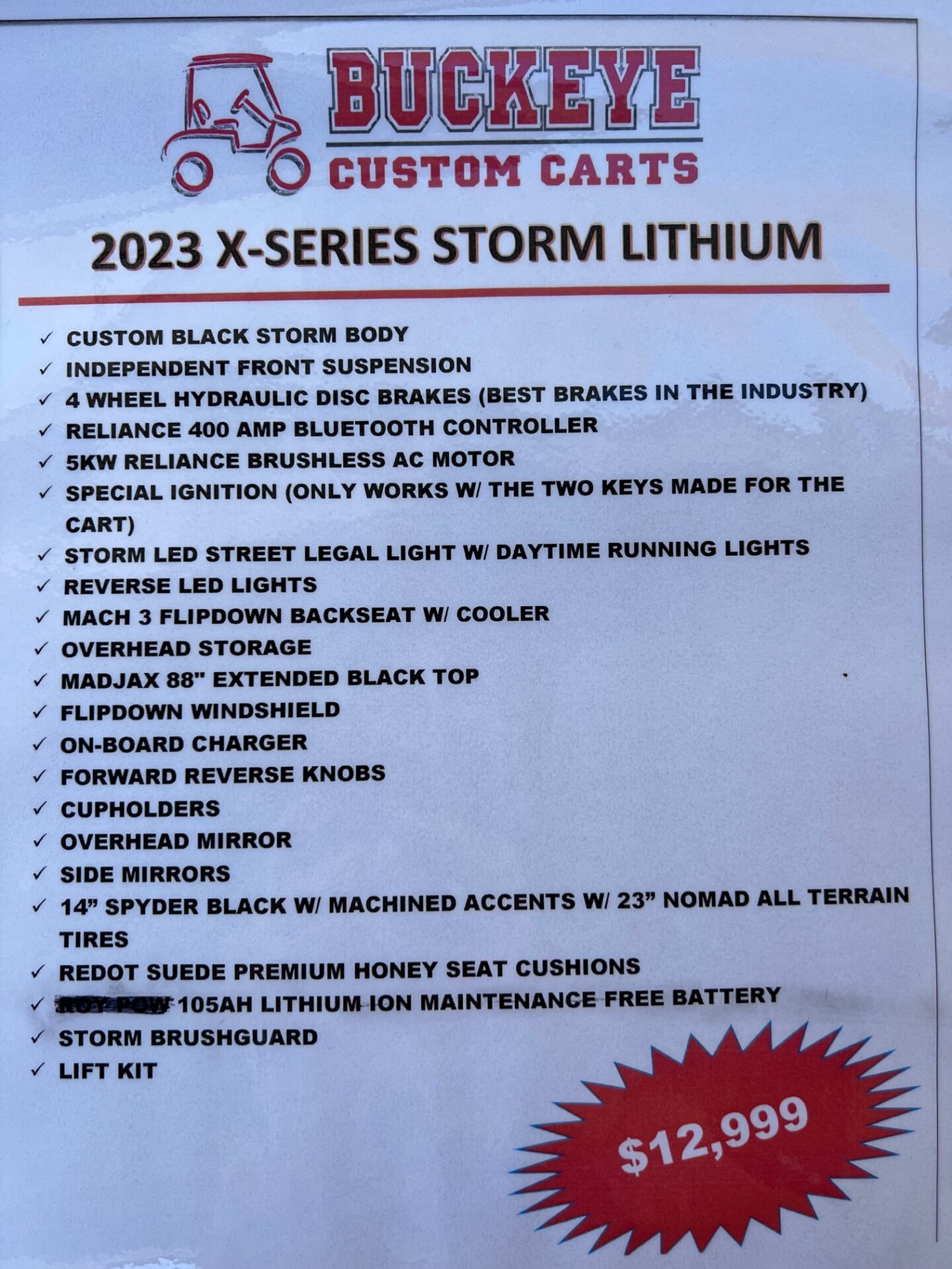 - SPECIAL IGNITION (ONLY WORKS W/ TWO KEYS MADE FOR THE CART)