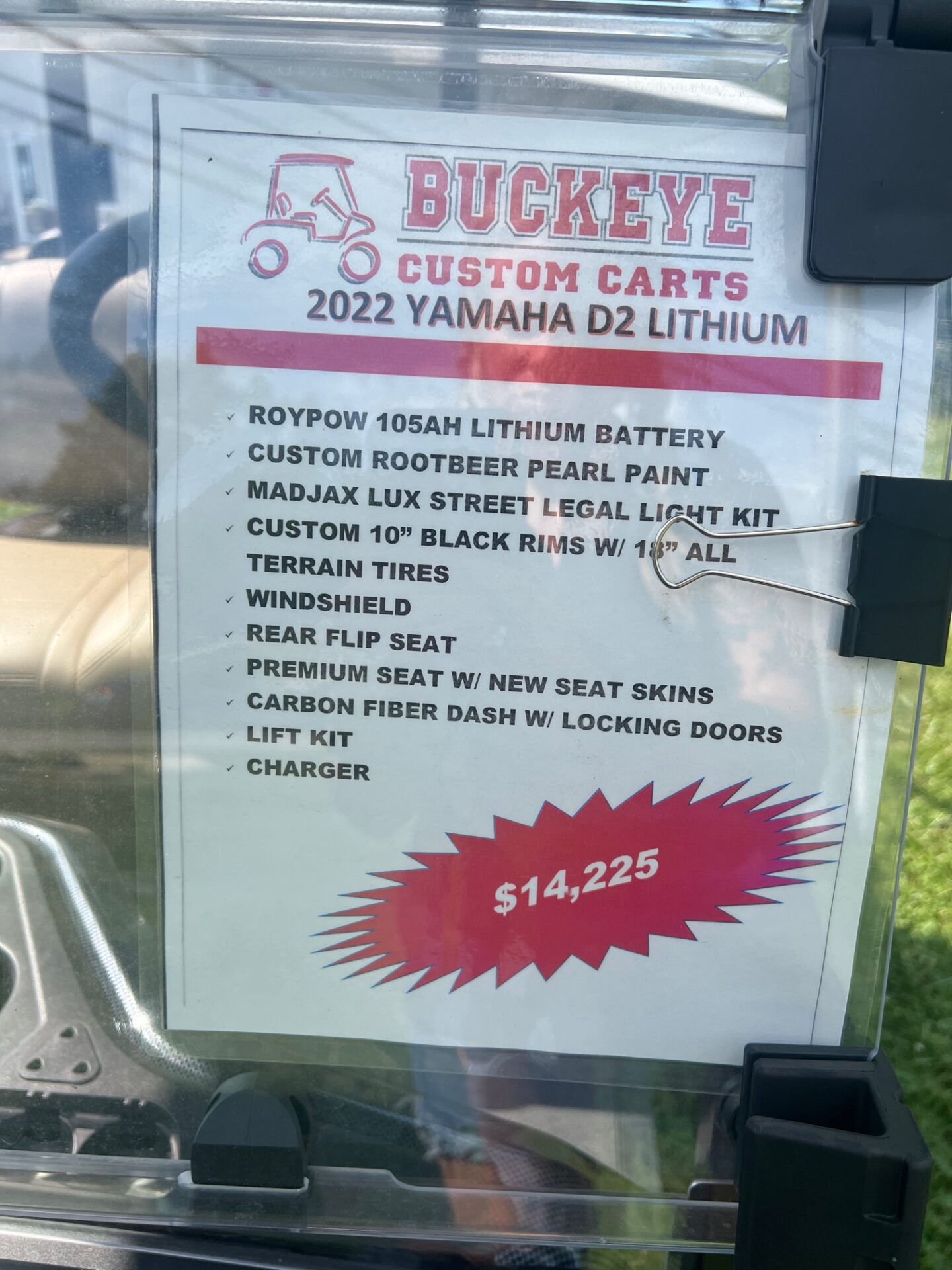 - custom 10″ black rims w/ 18″ all terrain tires