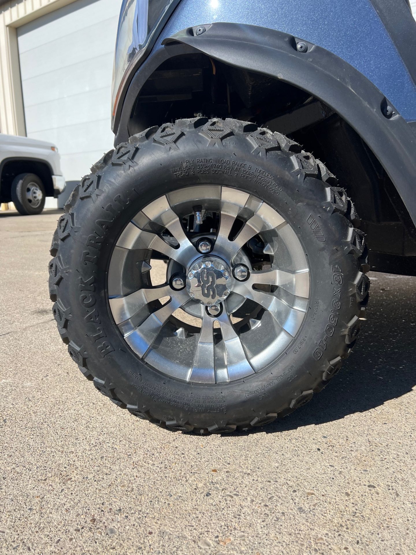 • custom  10″ ss rims w/ 18″ all terrain tires