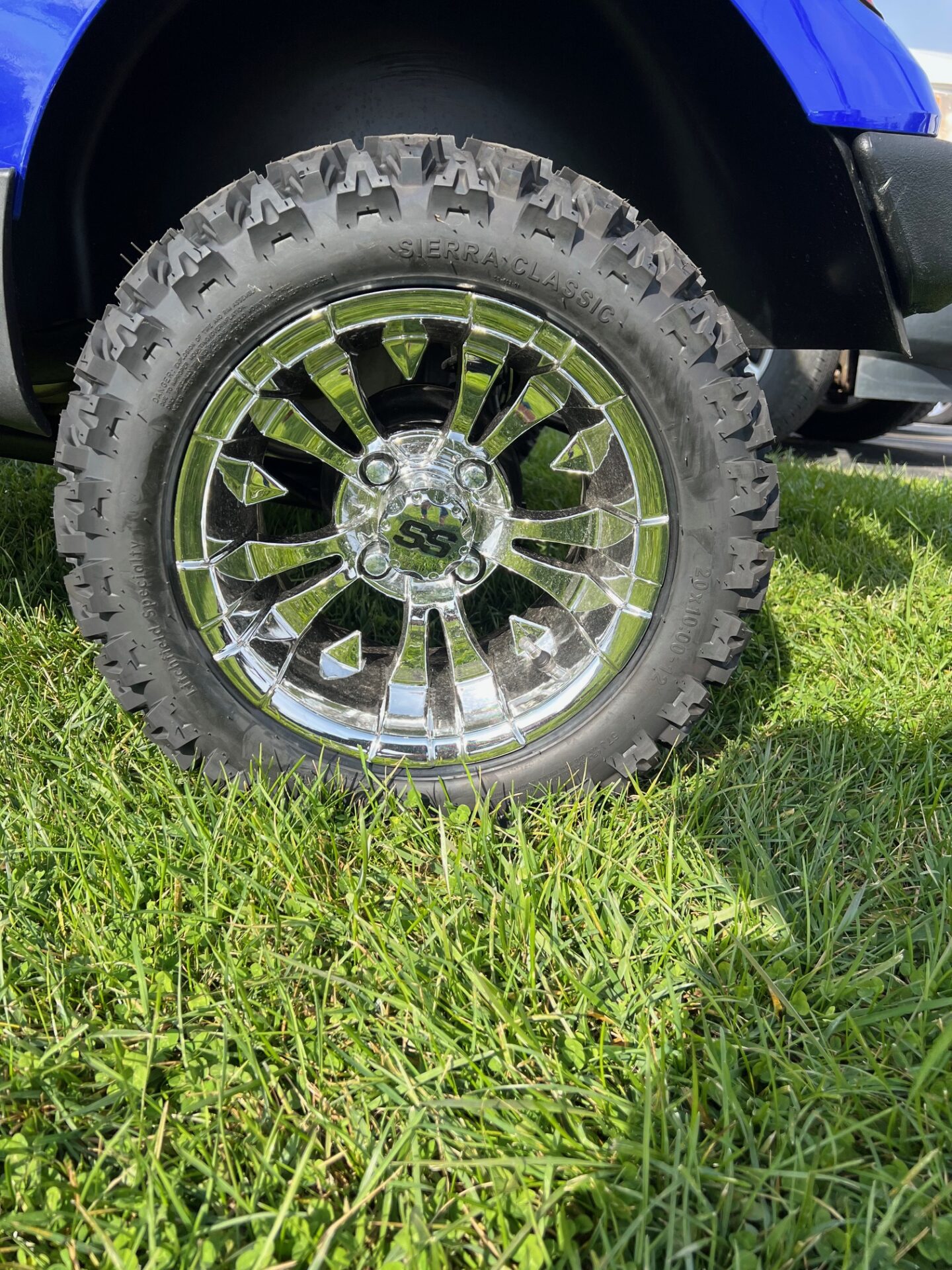 12″ chrome rims w/ 20″ all terrain tires