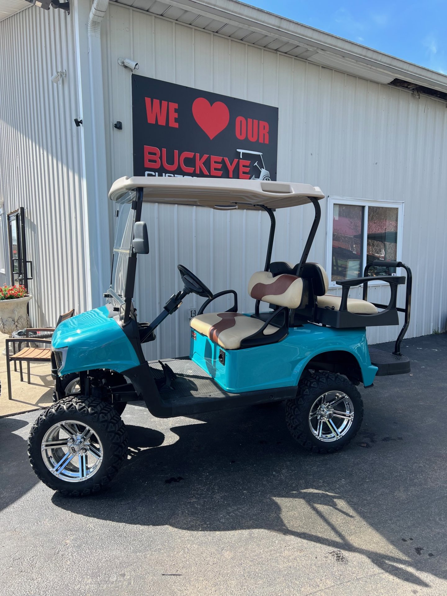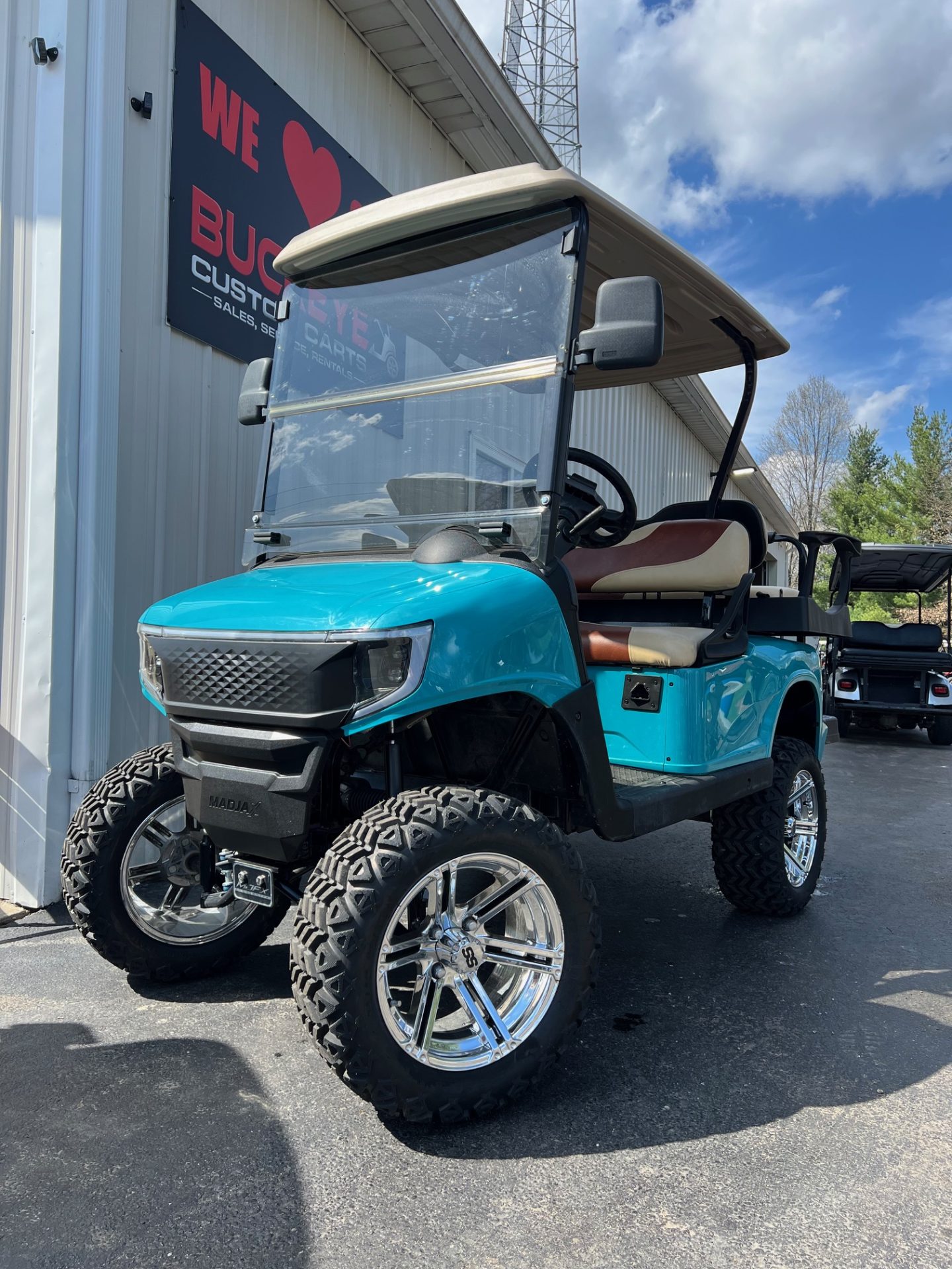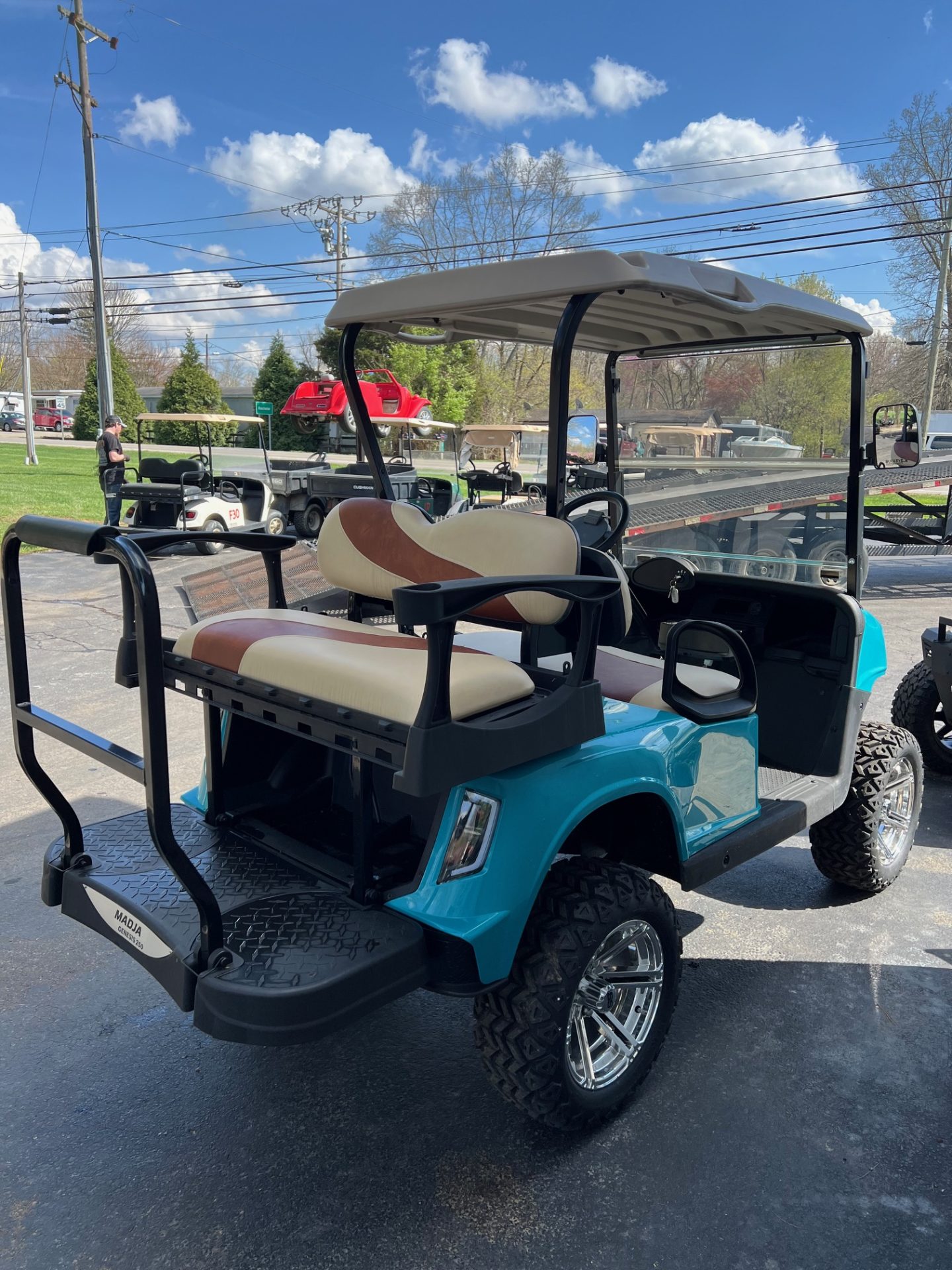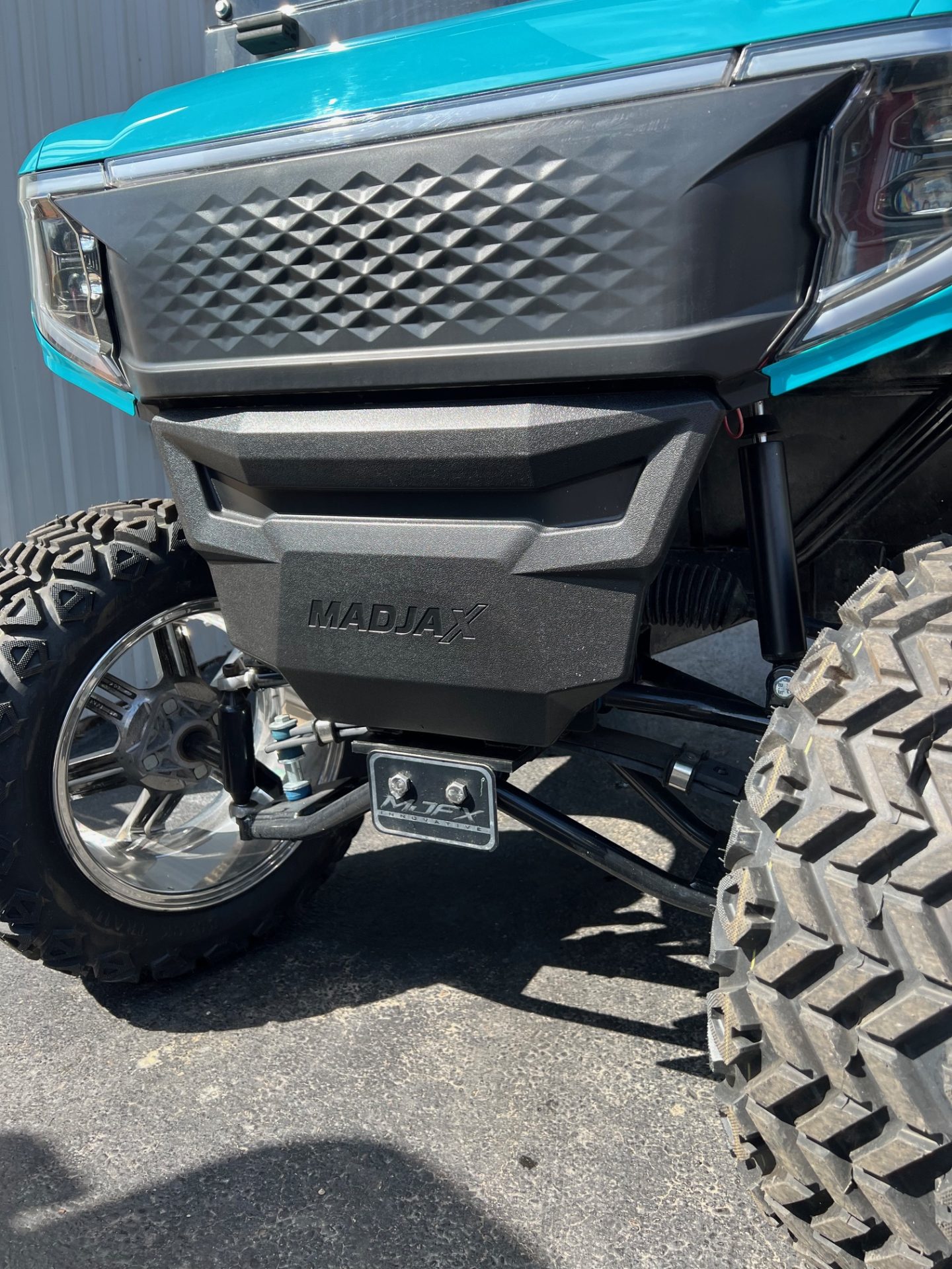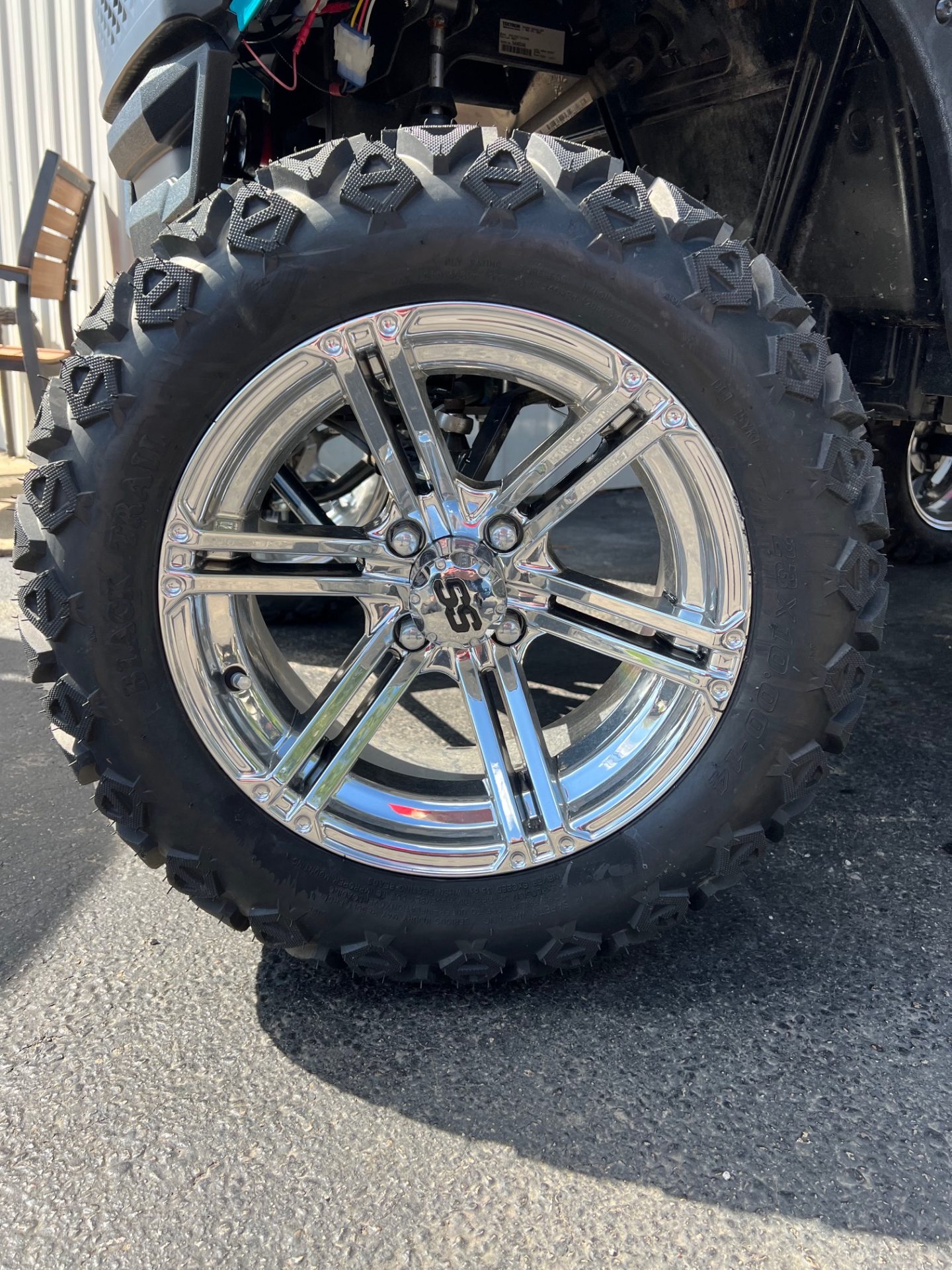 - 14″ chrome rims w/ 23″ black trail all terrain tires