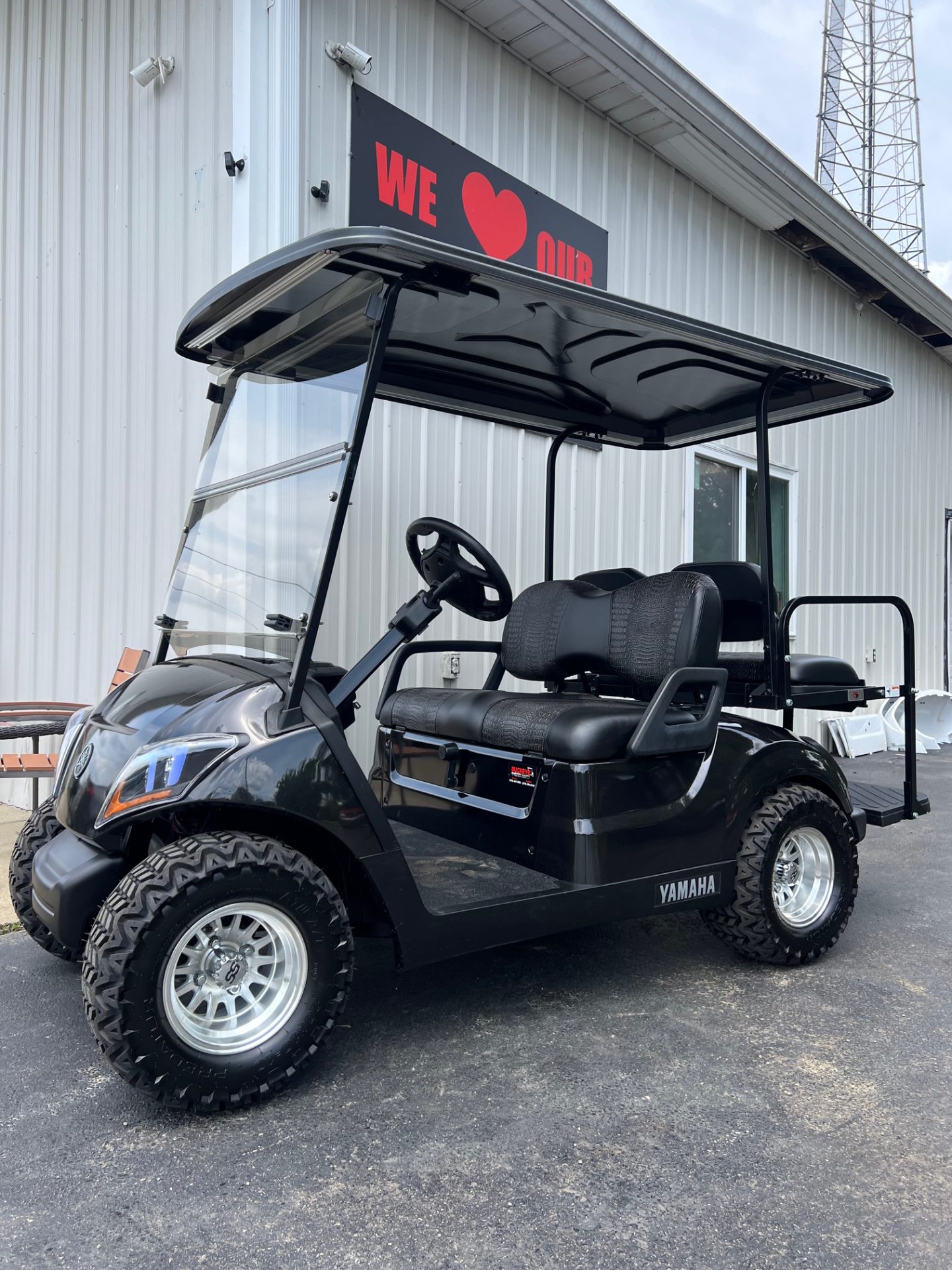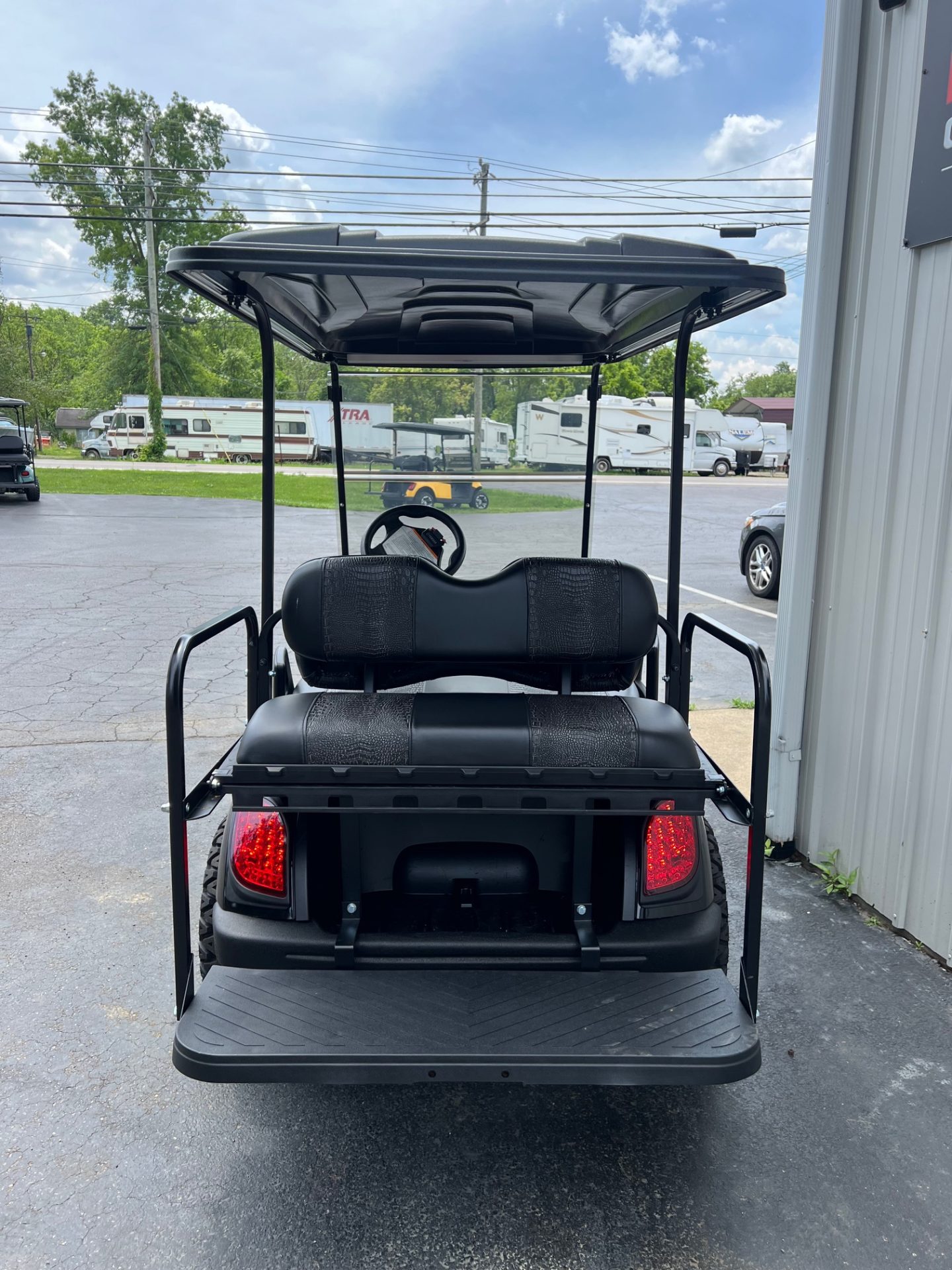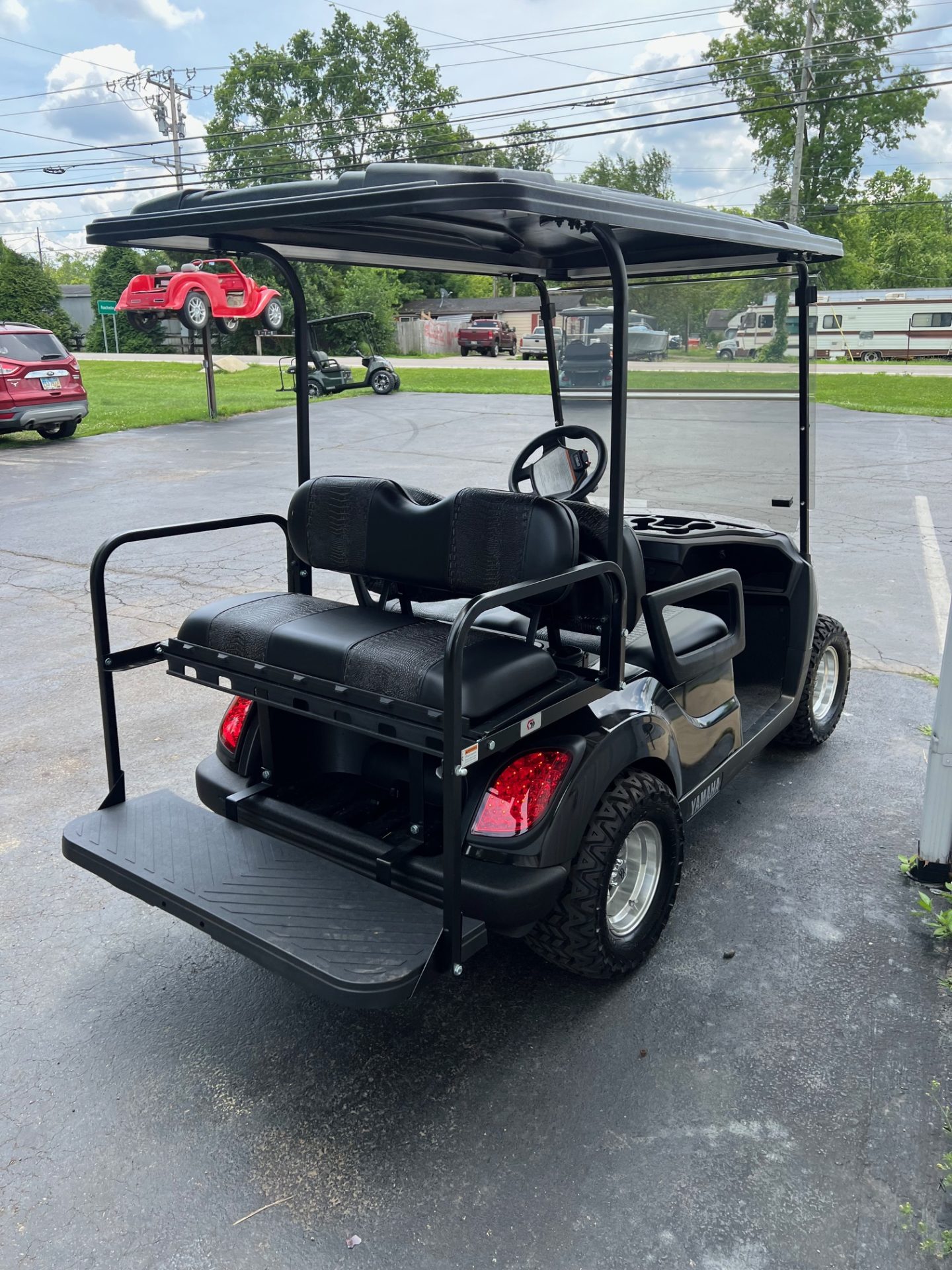 • custom black w/ black gator accent striped seats in front & rear