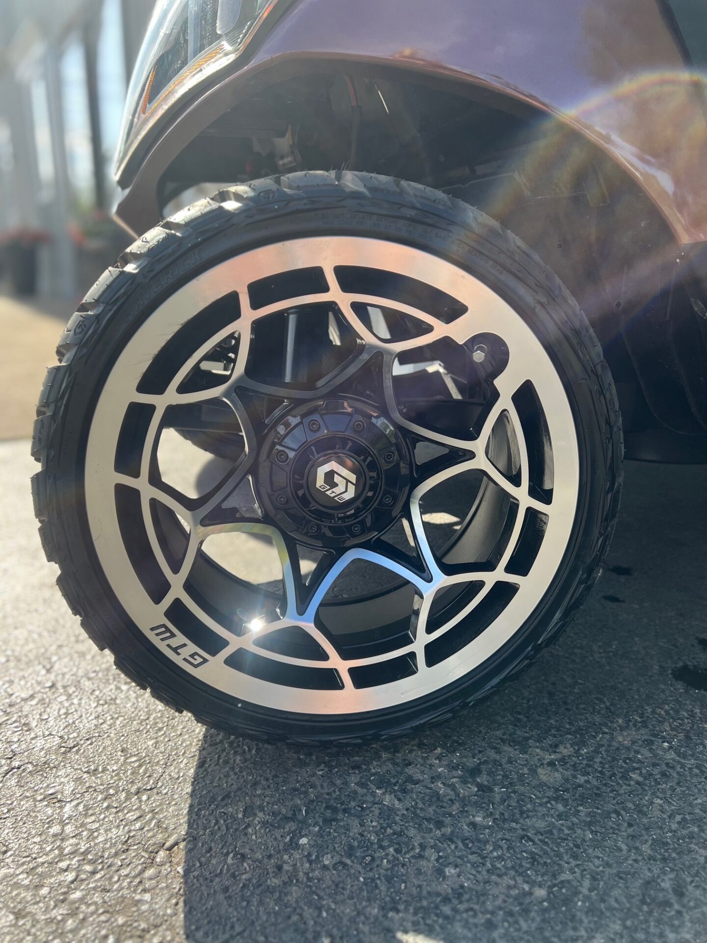 • 14″ black & brushed aluminum rims w/ maverick low pro tires