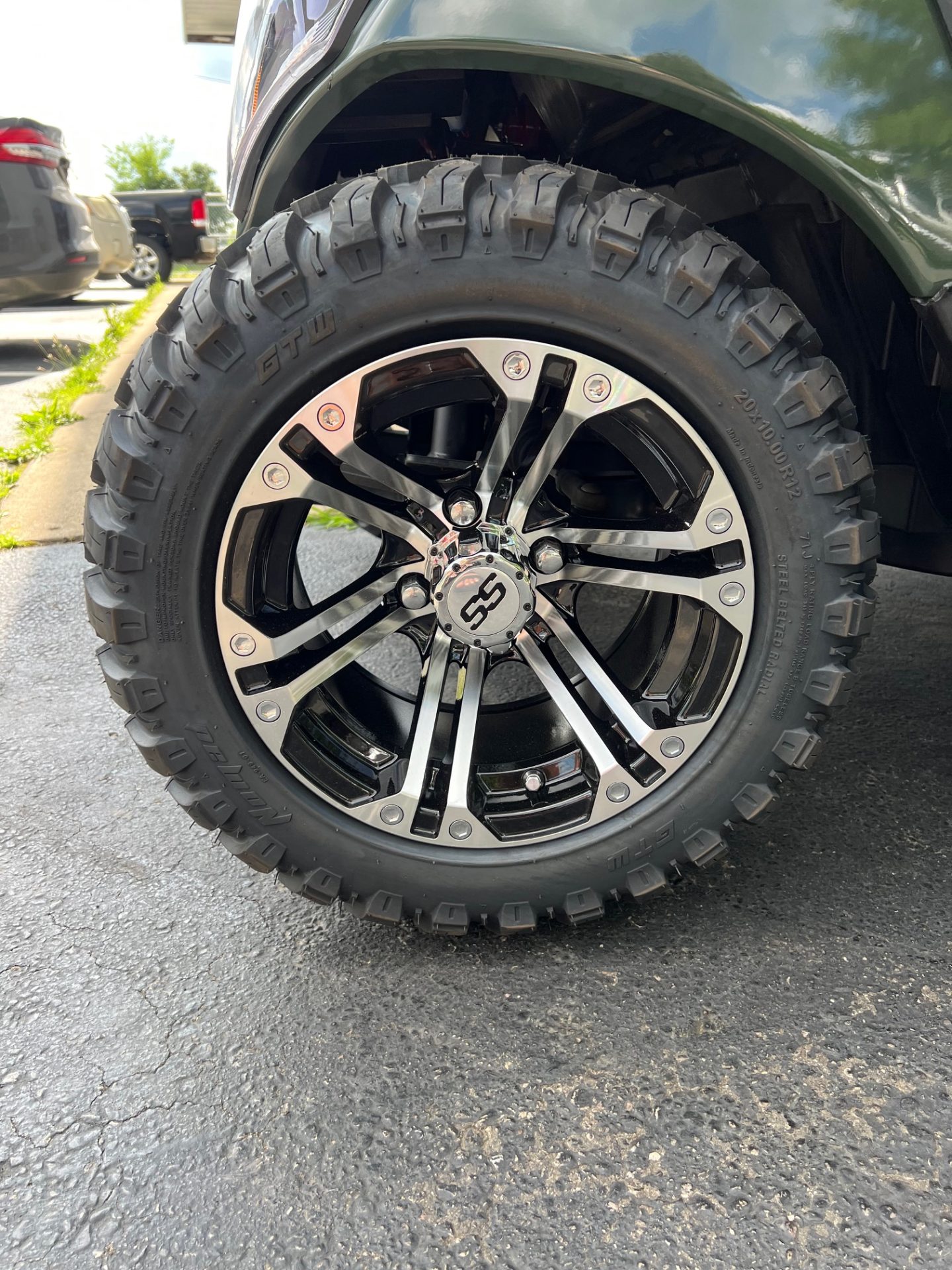 • 12″ black & brushed aluminum rims w/ 20″ all terrain tires