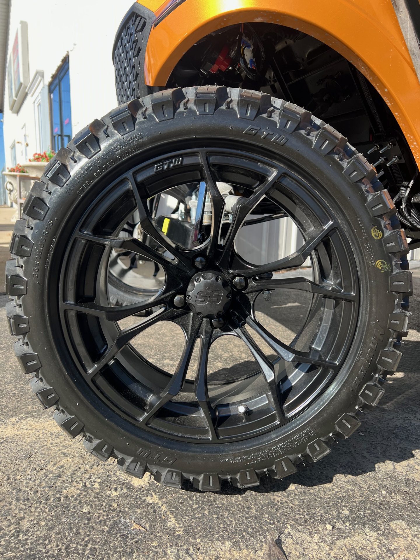 - 15″ matte black spyder rims w/ nomad steel belt all terrain tires