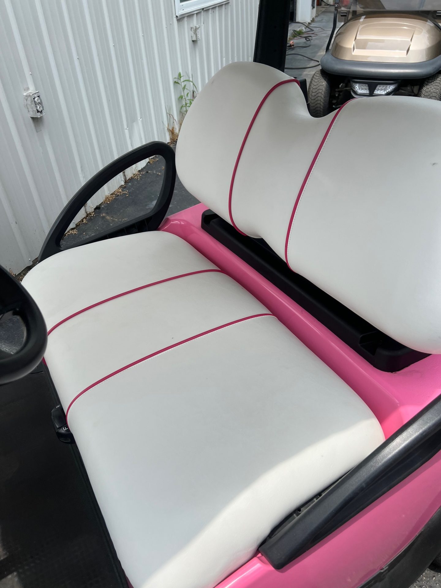 • custom white w/ pink pinstriped seats